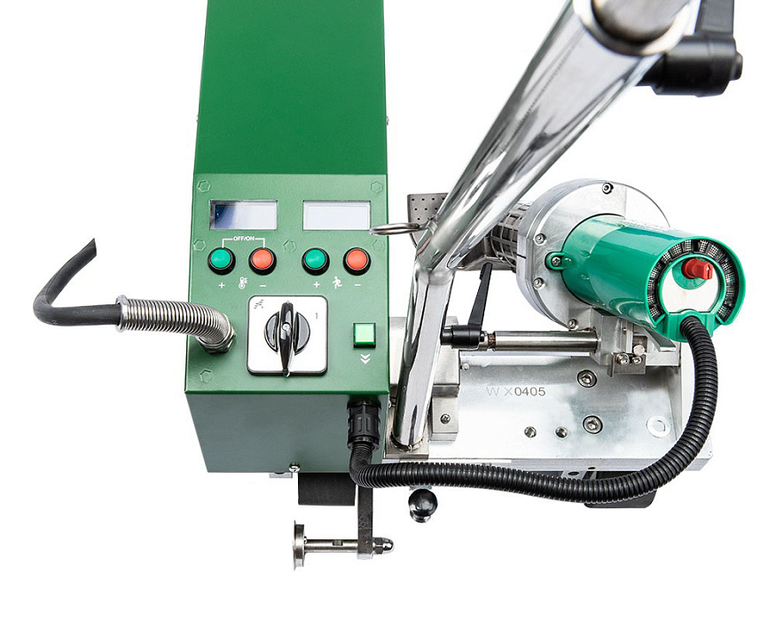 Сварочный аппарат Rotorica RT WP-1 380BL для сварки кровельной ПВХ пленки, используется для сварки внахлест мембранной кровли с шириною шва 40 мм. Имеет функцию автоматического начала сварки при опускании сварочного сопла в зону шва при помощи датчика движения. Для контроля качества монтажа, на двух цифровых дисплеях выдаются заданные и фактические параметры сварки (температура, скорость) и имеется возможность ими управлять. Не требуемый обслуживания бесщеточный двигатель без замены угольных щеток со сроком службы до 6000 часов. Это мощный и простой в эксплуатации сварочный аппарат, который подходит для конструкций из ПВХ, ТПО, EPDM, CPE и других полимерных гидроизоляционных мембран.
